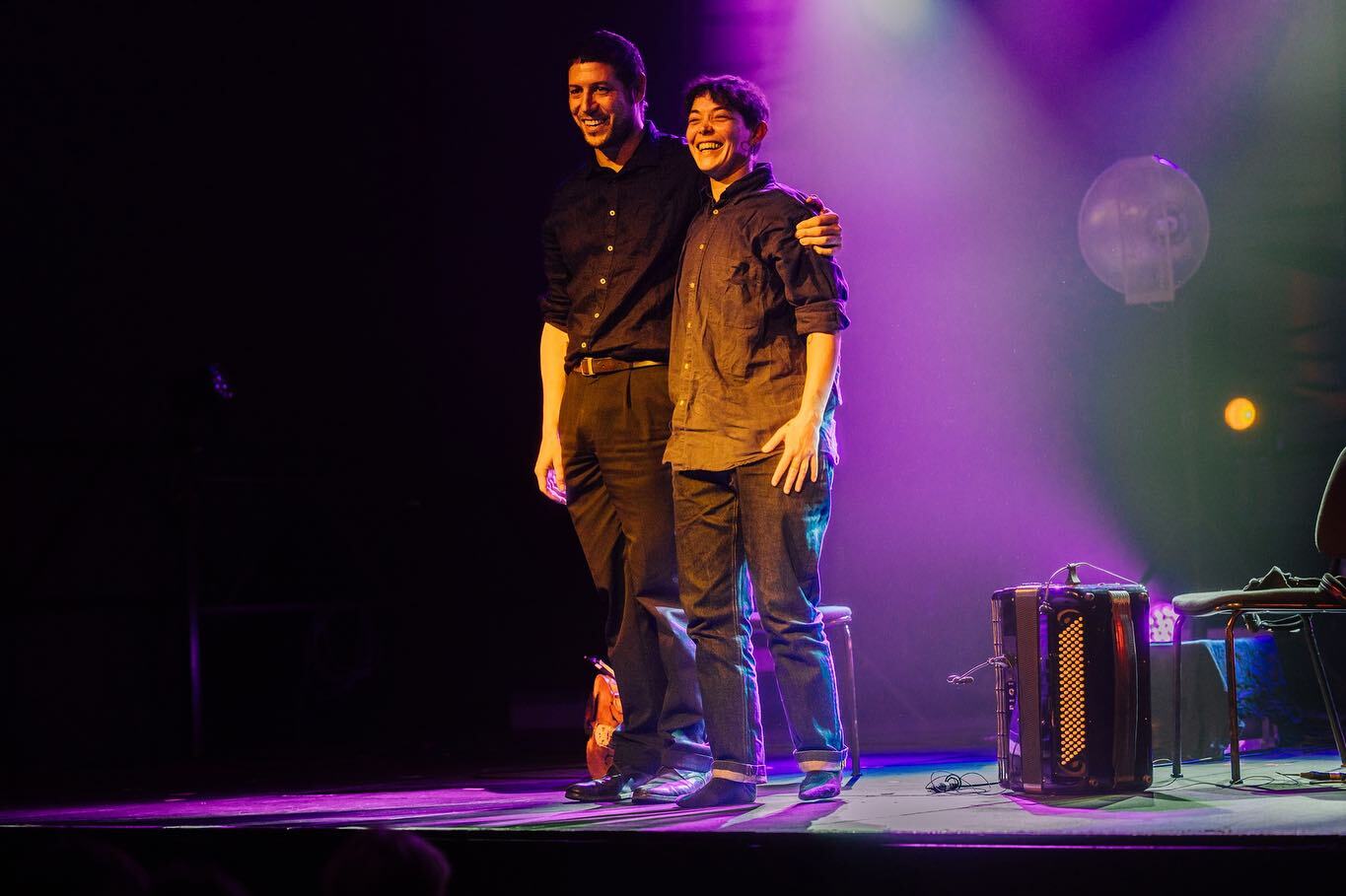 La complicité entre Zabou Guérin et Baltazar Montanaro est évidente. Elle permet un dialogue instinctif qui explore la matière sonore aux confins des musiques classiques, expérimentales, jazz, traditionnelles, bluegrass et tzigane, dans un seul et même souffle : comme un plan séquence qui traverserait toute l’histoire du cinéma en une heure. L’accordéon Bayan, imposant et sensible, surprend par sa finesse tandis que le violon baryton s’amuse tout en habileté et variations. Ensemble, ils creusent la texture du son avec une liberté et une écoute rares. On est traversé·e par une énergie brute, une sensualité et une sincérité qui redonnent toute sa place au présent.